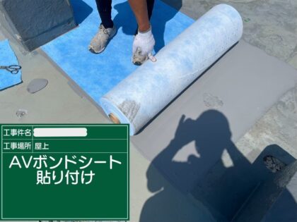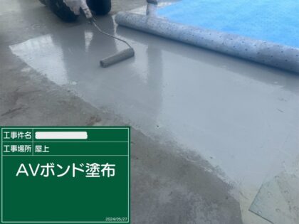 プライマー塗りの上に孔あき通気気シートを貼りしっかりと転圧固定し接着させます。