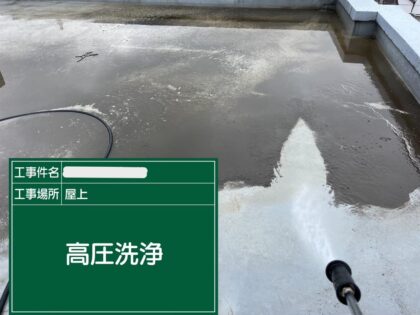 防水面をバイオ高圧洗浄で現状の汚れを洗い落とし、清潔な状態にしてから防水を行うことで密着性を高めるために不可欠な作業です。