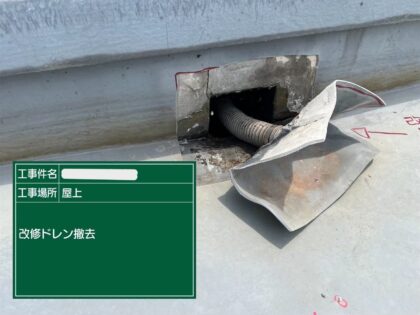 すでに改修用ドレンが使われている為、交換のために撤去します。
