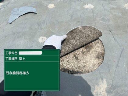既存防水の下地から浮き上がり剥離している脆弱部を撤去します。