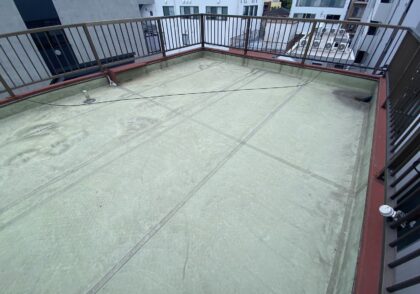 トップコートで防水層を保護して防水完了となります。トップコートは、ウレタン防水主材塗膜を保護する役割があり防水層を太陽の熱や紫外線から守り直接に外気や雨などの影響による劣化を防ぐ効果があります。