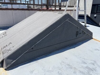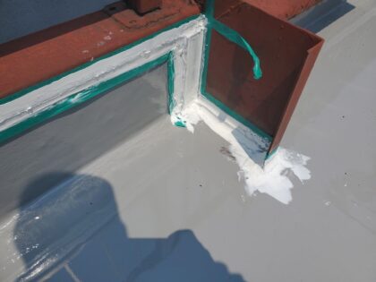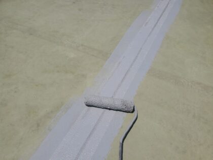 入隅シーリングを打つことで下地コンクリート構造が違うために発生する動きを防水層に直接影響を与えない緩衝効果があり防水層が切れることを防ぎます。