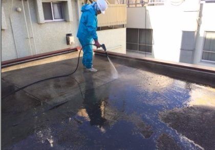 高圧バイオ洗浄で屋上を洗い流します