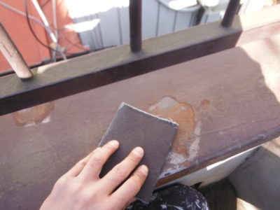 鉄部にサビ止めを塗布します。