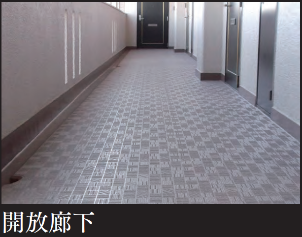 耐候性や強度、寸法安定性などに優れ、通路の歩行に適し長期にわたって建物を守り続けます。