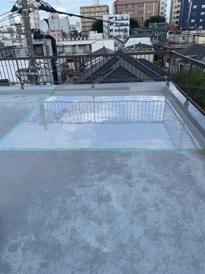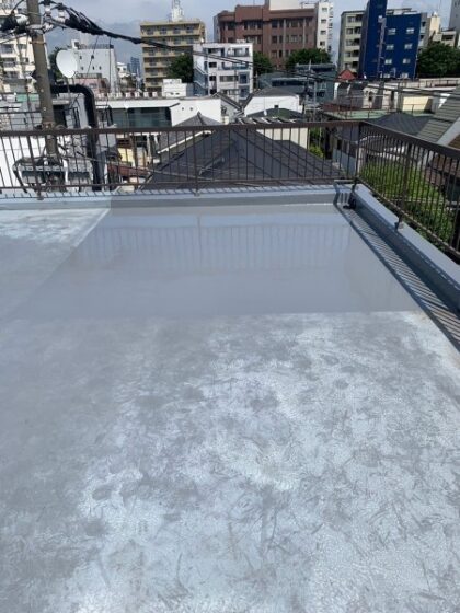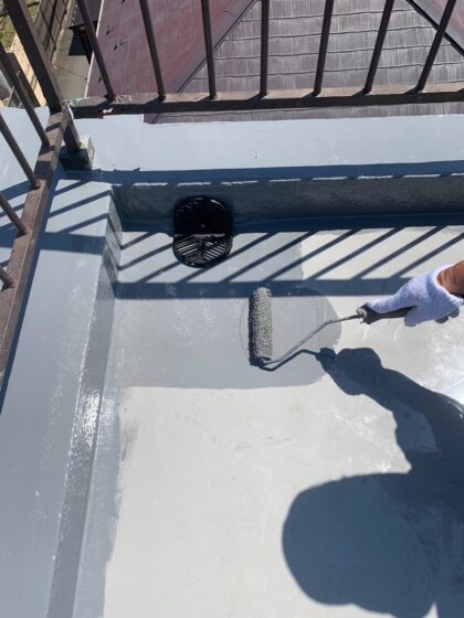 トップコートは、ウレタン防水主材塗膜を保護する役割があり防水層を太陽の熱や紫外線から守り直接に外気や雨などの影響による劣化を防ぐ効果があります。