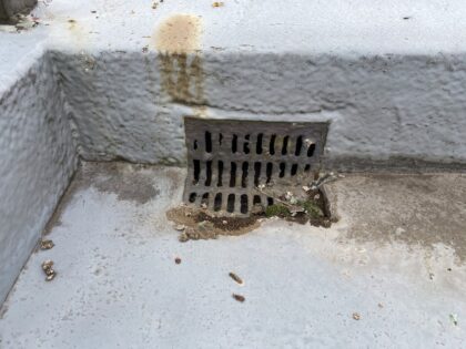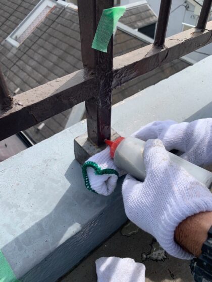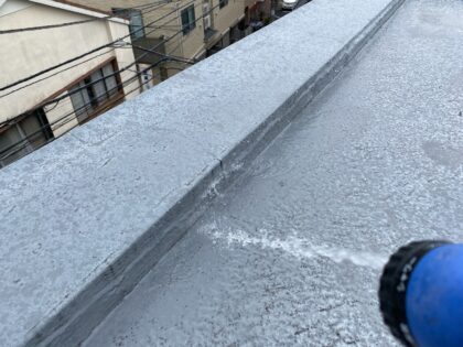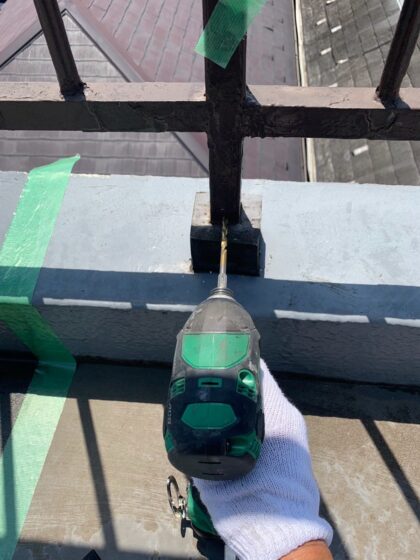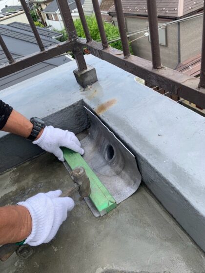 鉄骨建物 屋上防水工事 排水ドレン補修 一部防水工事 カチオンモルタル補修 ウレタン塗膜防水 劣化防水撤去 散水調査 雨漏水修理工事 手すり支柱グラウト注入 杉並区阿佐ヶ谷南I様