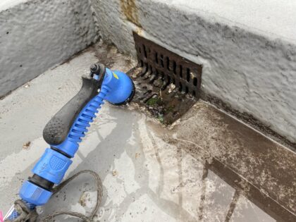 漏水箇所を特定するため、数日かけて散水調査を行います。