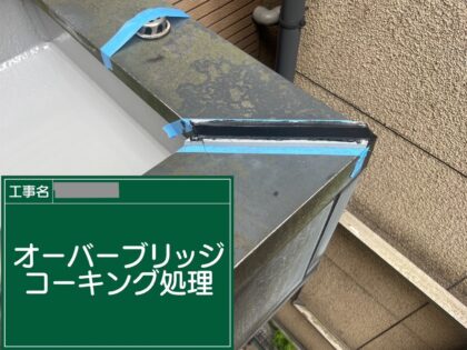 アルミ笠木を撤去せずに防水工事を行うので笠木のジョイント部にはオーバーブリッジシーリングを行います。
