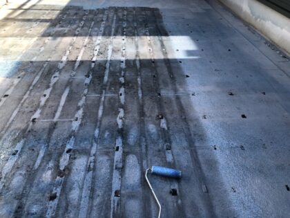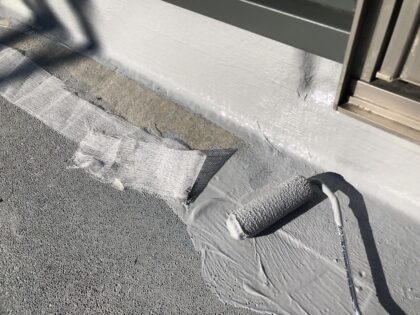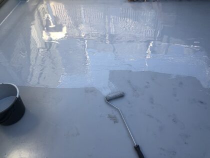 プライマーはウレタン主材と下地とを完全接着させるバインダー効果を得るために必要不可欠な工程になります。後に剥離する原因の一つが下地との密着不良などがあるので大切な施工になります。