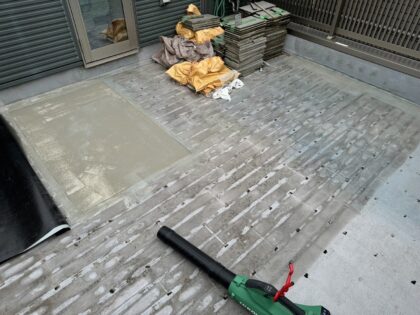 屋上防水工事 屋上下地補修工事 床保護材セラミックボード 新宿区市谷加賀町O様