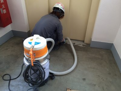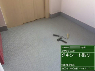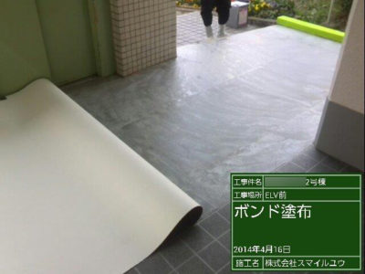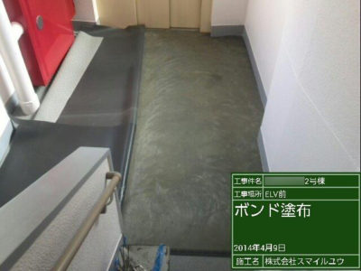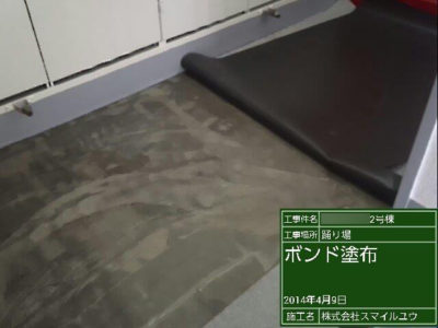 エレベーター前にボンド塗布します。