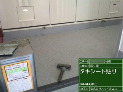 踊り場タキシート貼りつけます。
