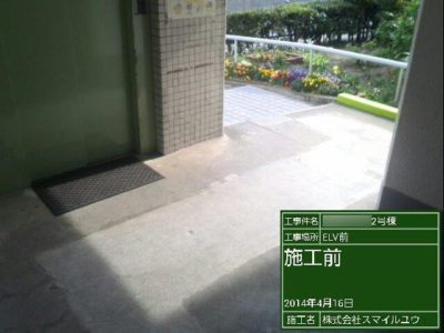 エレベーター前 施工前 段差があります。