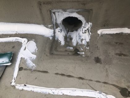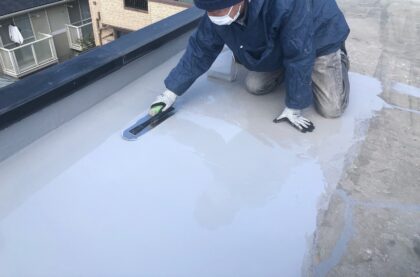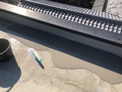 防水層を撤去した部分の下地コンクリートをカチオンモルタルで整えます。