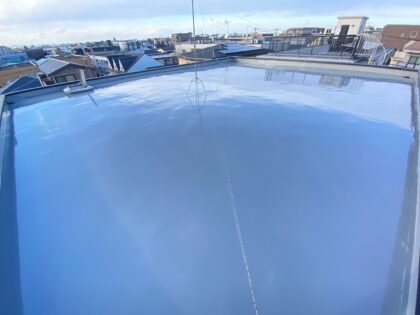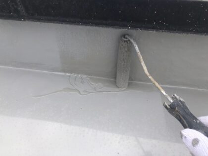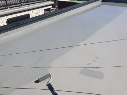 ウレタン主材の2層目を塗ります。防水塗膜は2回重ねで塗ります。