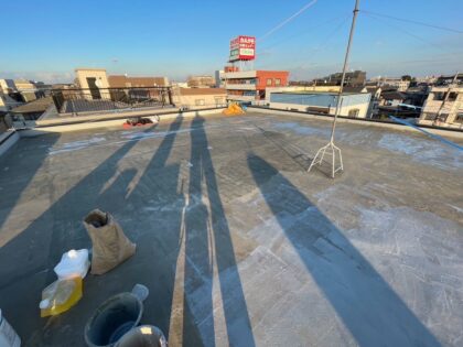 屋上防水 ウレタン塗膜防水 水溜り不陸調整 板橋区成増Wビル