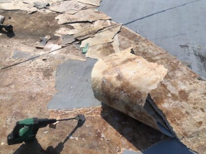 平場ほど劣化はしていませんが、平場と併せて既存防水層を全撤去して施工する必要があります。
