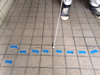 階段段鼻部をノンスリップテープでコーティング処理します。