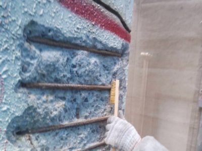 ワイヤーブラシで鉄筋のサビ、汚れを落としていきます。
