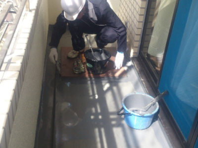 ベランダ下地調整、プライマーを塗布します。