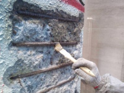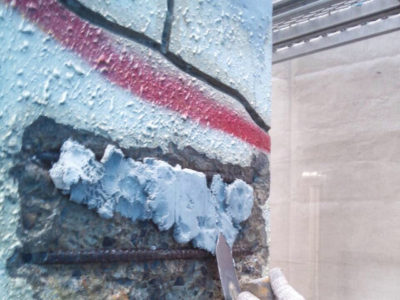 エポキシモルタルを充填し補修していきます。