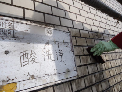 タイル面を酸洗浄します。