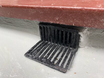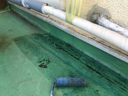 脆弱撤去部の欠損をウレタン防水材で補修をします。