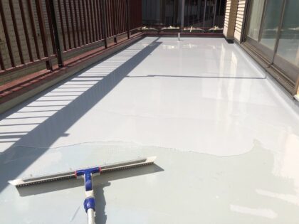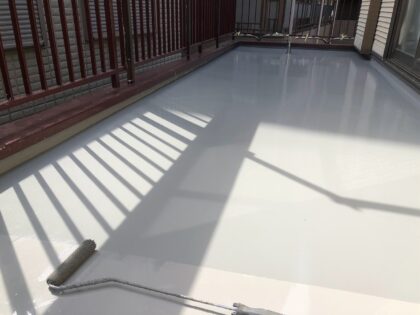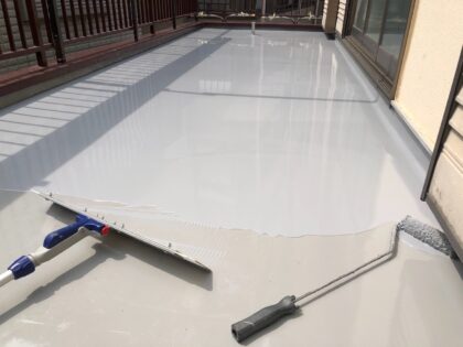 トップコートは、ウレタン防水主材塗膜を保護する役割があり防水層を太陽の熱や紫外線から守り直接に外気や雨などの影響による劣化を防ぐ効果があります。