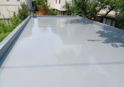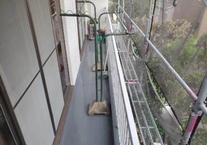 ベランダウレタン塗膜防水 出窓上防水 庇上防水 パラペット笠木防水 遮熱フッ素トップコート+高強度ウレタン/通気緩衝工法AVシート仕様(一部密着工事)板橋区大山西町A様