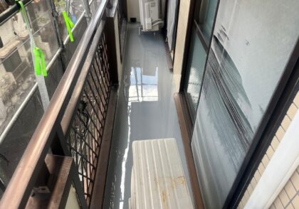 ベランダ防水 ウレタン塗膜防水密着工法 補強クロス 高圧洗浄 既存シート撤去 下地調整 中野区南台K様