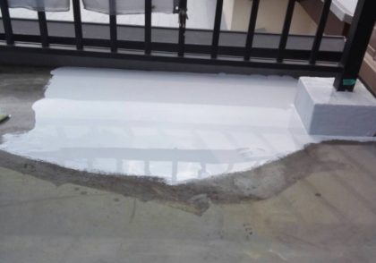ウレタン塗膜防水 笠木オーバーブリッジシーリング 手すり支柱シーリング防水処理 密着工法 フッ素トップコート 屋上防水工事 3Fバルコニー防水工事 板橋区板橋T様