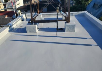 ウレタン塗膜防水 防水全撤去 笠木撤去再取付け 笠木内防水 通気緩衝工法 フッ素トップコート 屋上防水工事 塔屋防水工事 3Fルーフバルコニー防水工事 新宿区山吹町Y様