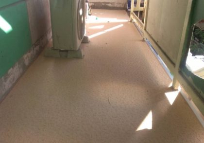 分譲マンションの床シート防水層を剥がしてからバルコニーウレタン防水工事を行いました