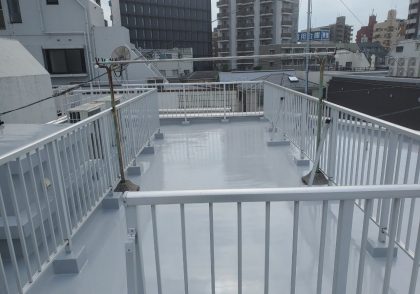 屋上ルーフバルコニー防水工事 階段廊下長尺ノンスリップシート防水工事 コンクリートパラペット笠木防水 新宿区大久保Y様